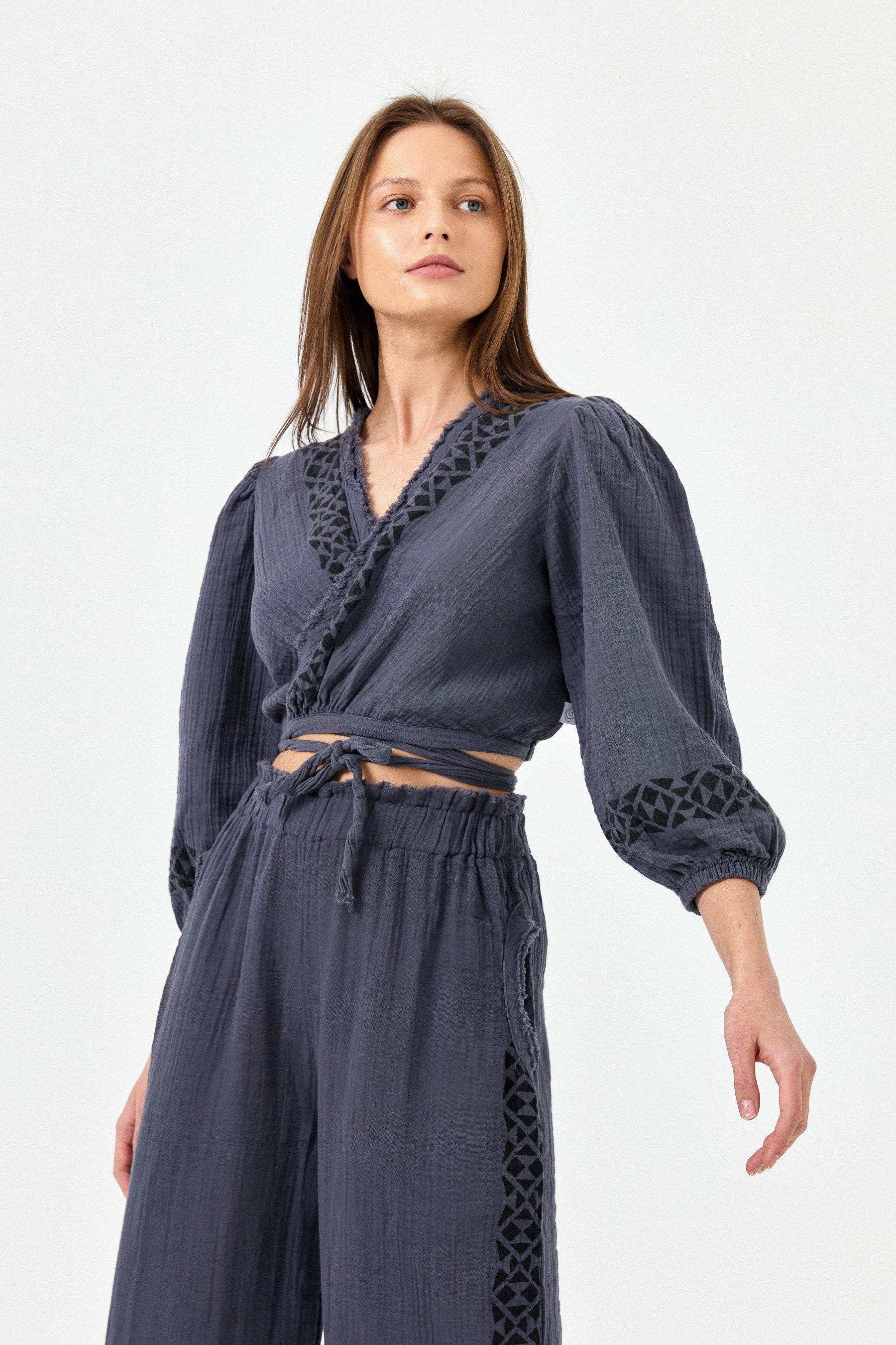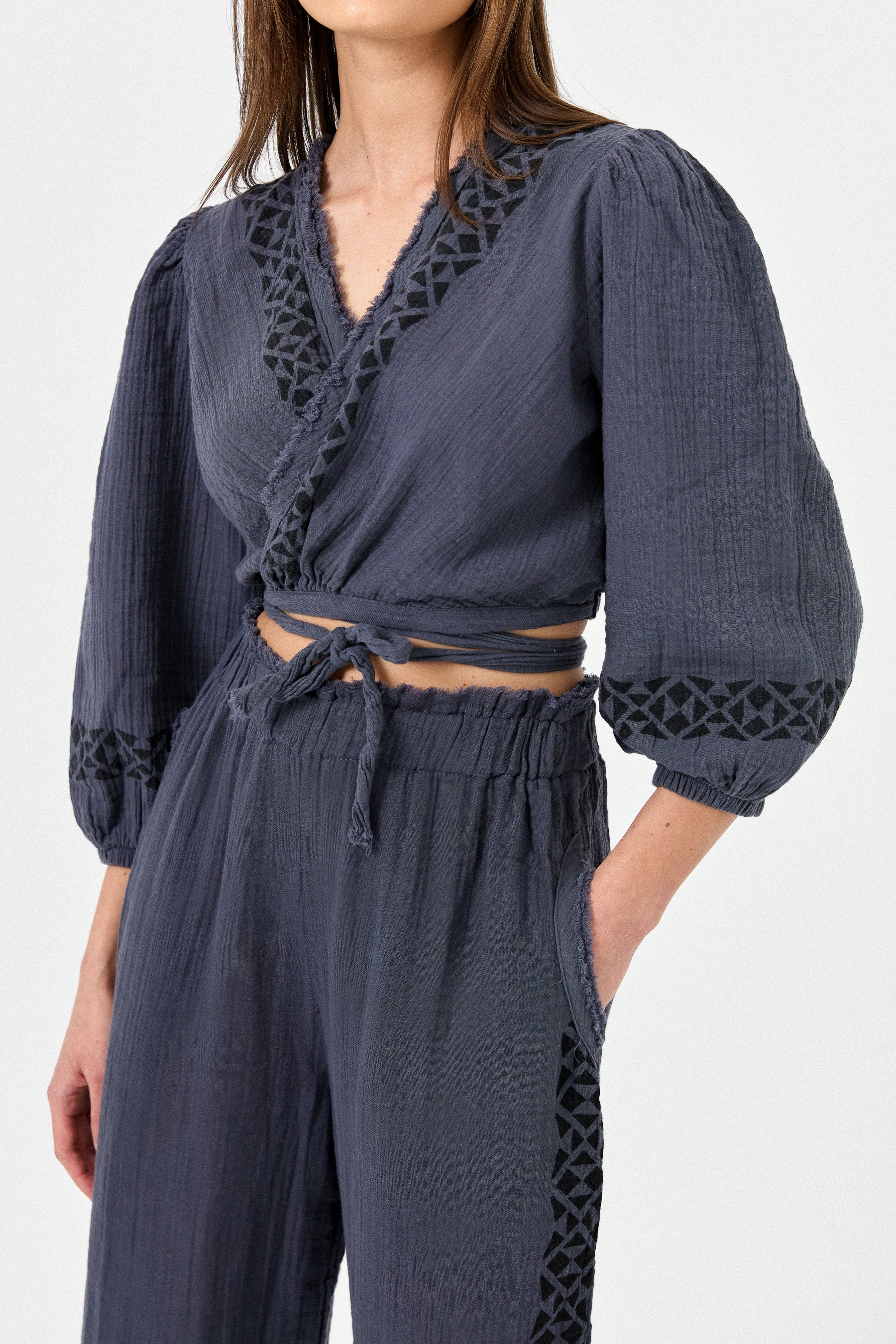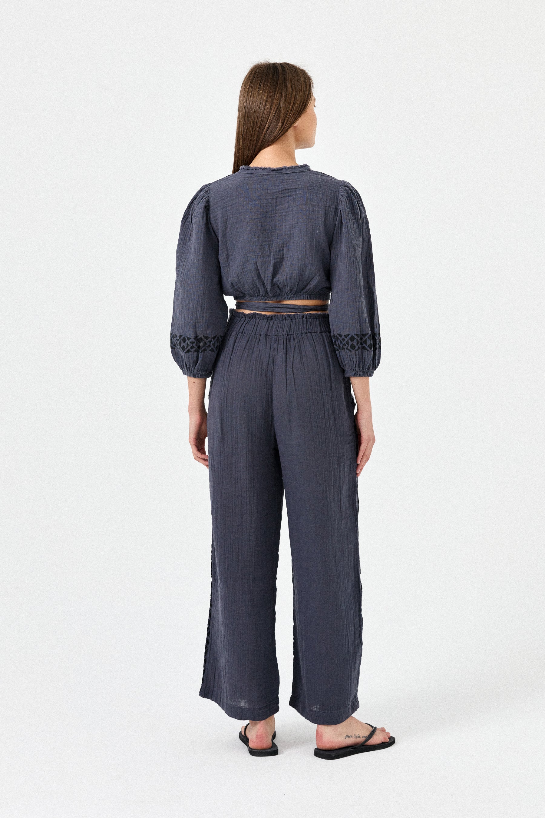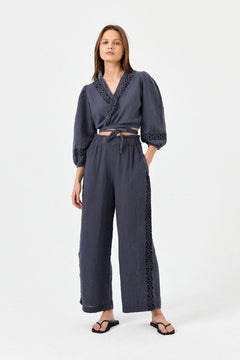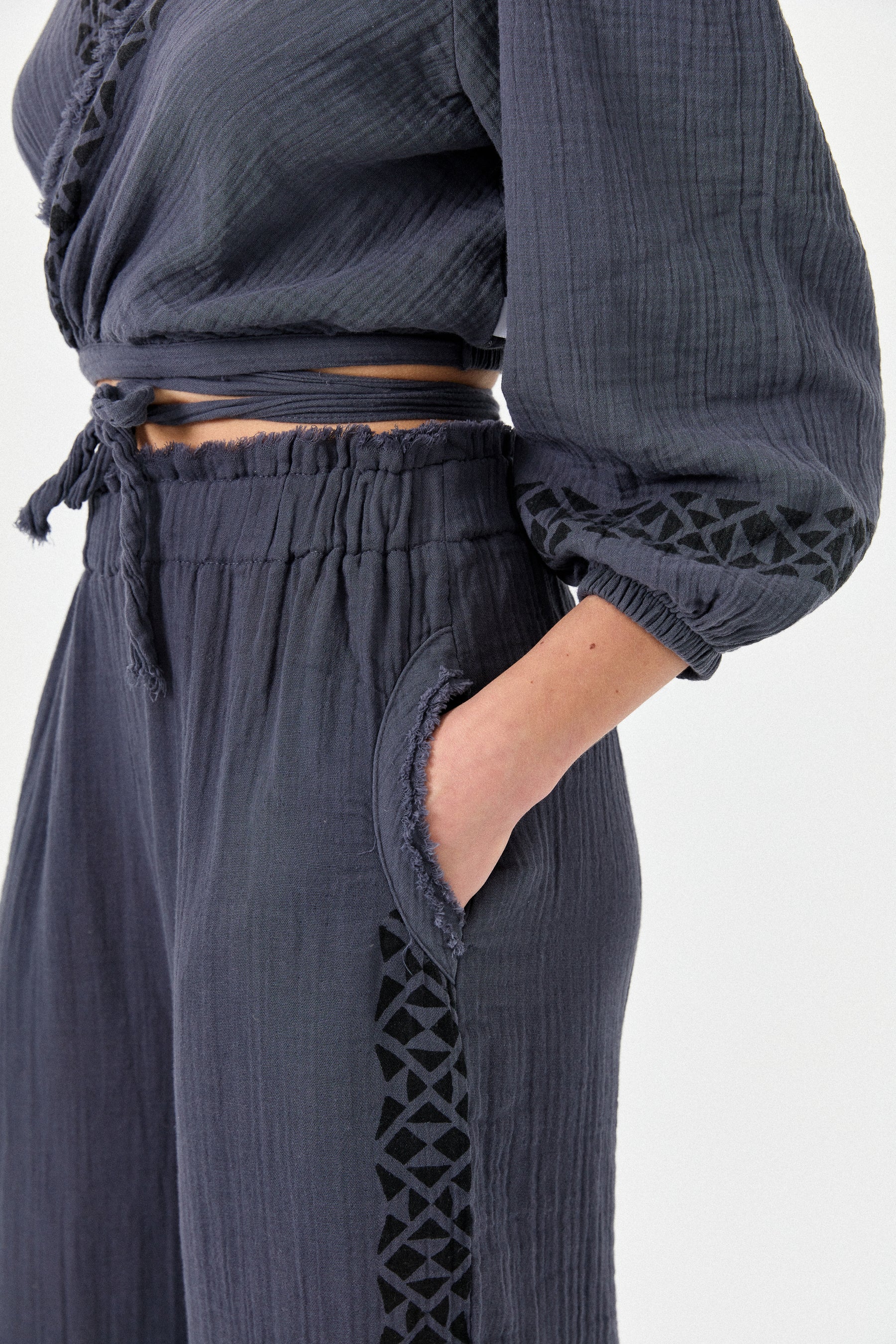 These elastic waist pants are made from 100% cotton. With a unique wood print that is printed by hand, it's effortlessly stylish. Wear them with the matching top and sandals for a casual stroll.