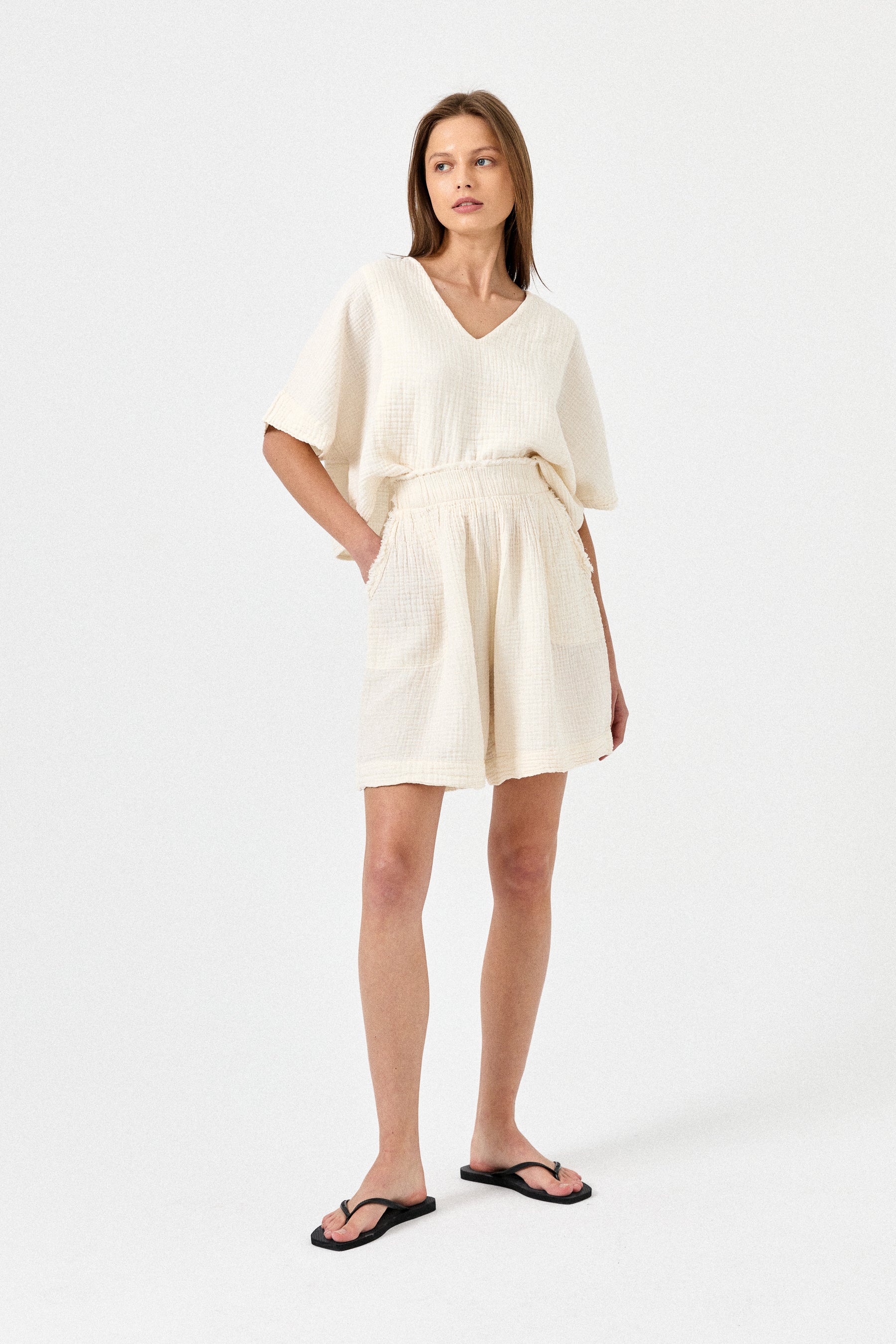 Crinkle V-Neck Top
