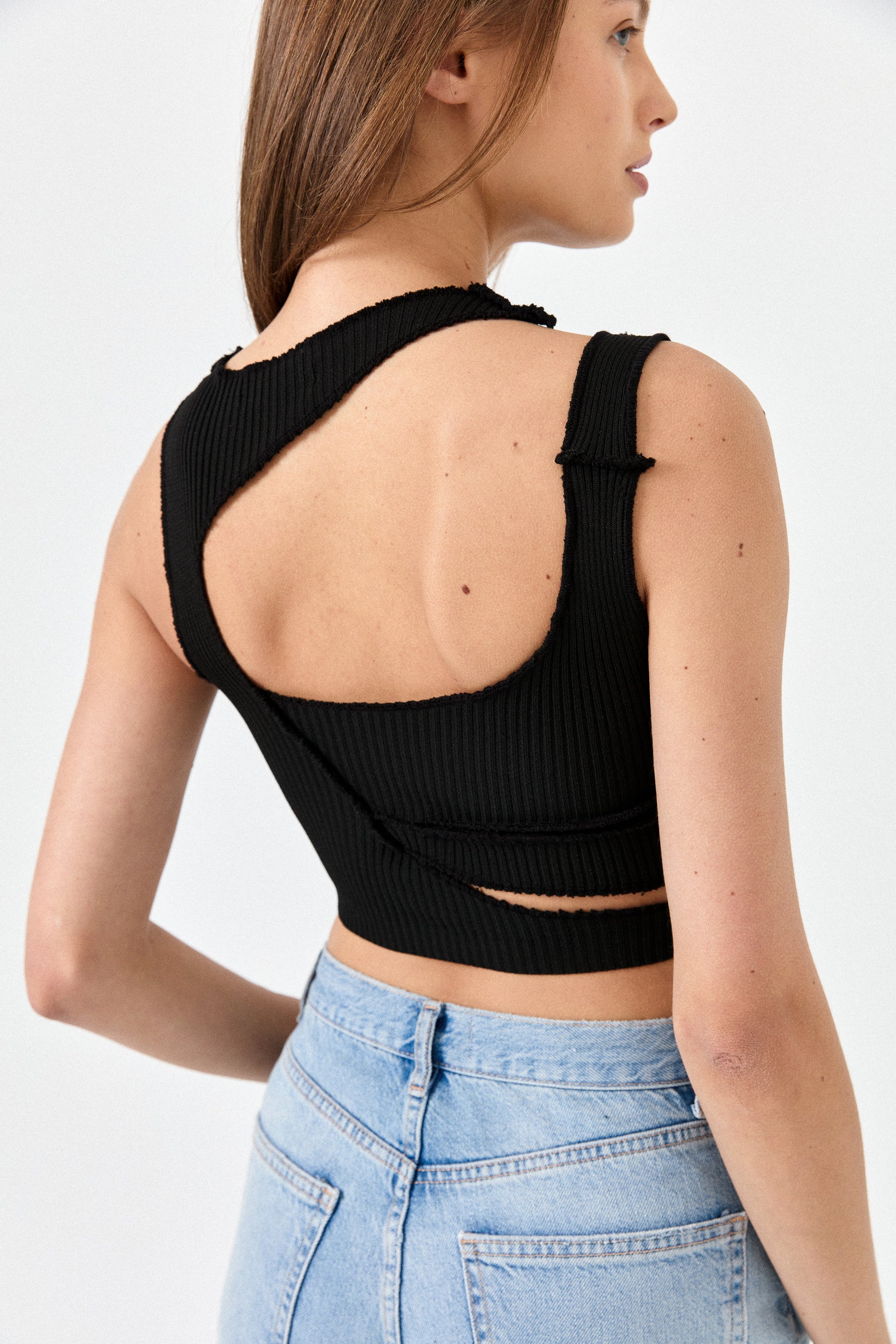 This handmade crop top is made using deadstock fabrics, offering unique textures and colors that are limited in quantity. Wear it under a blazer or style it alone with jeans on a summer day.