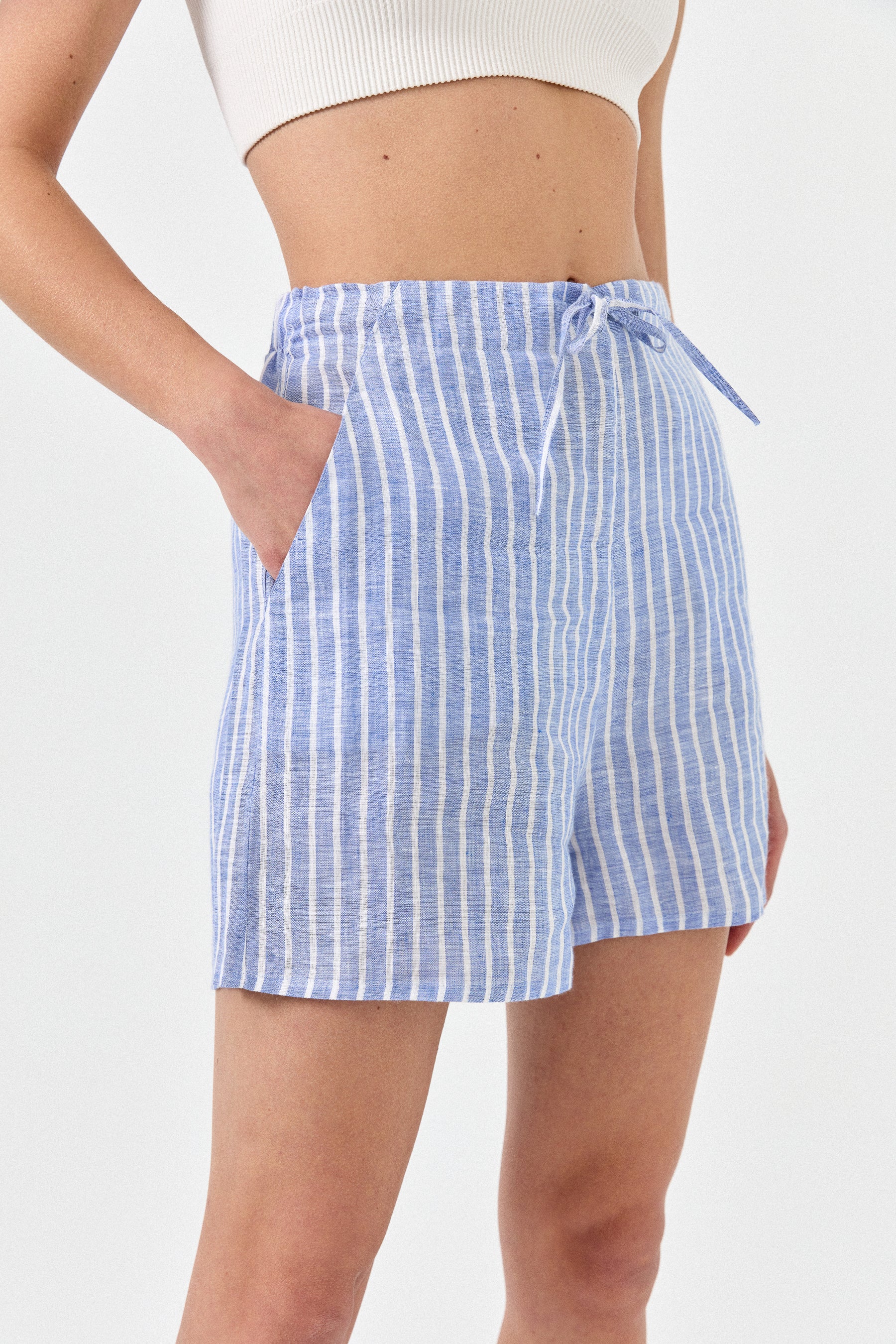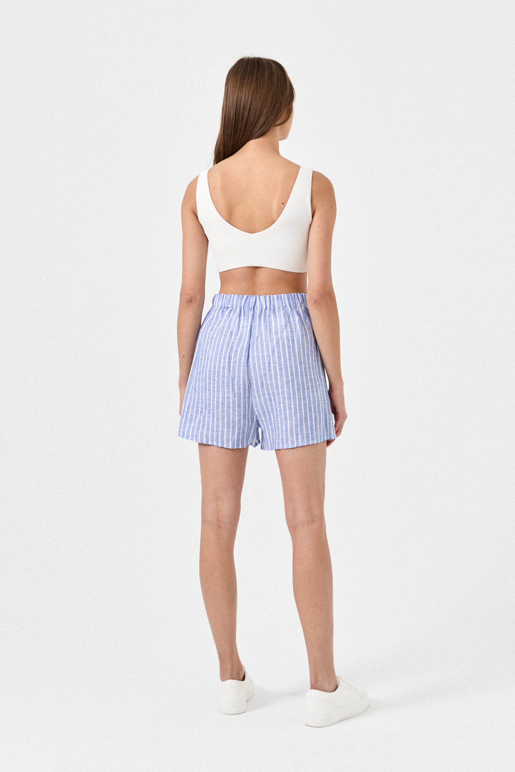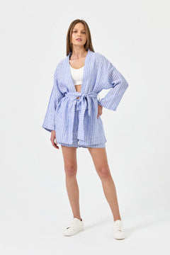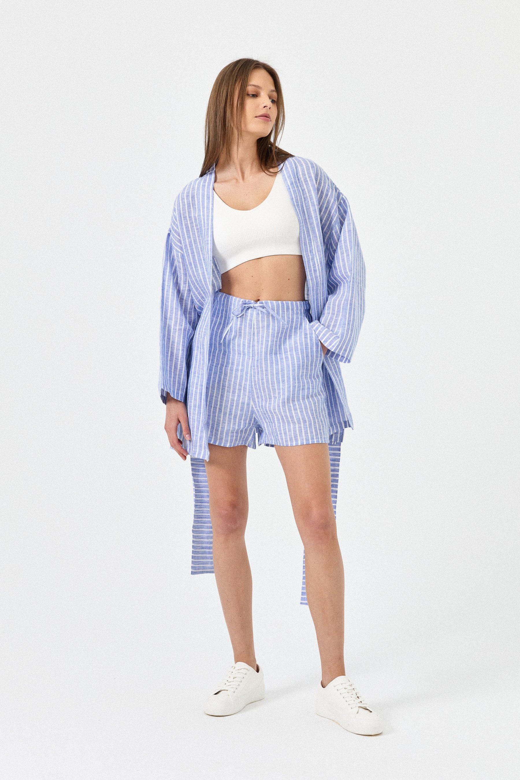 Comfortably stylish, these drawstring shorts will be your go-to for effortless weekend looks. The striped design creates a laid-back yet refined style. Wear it with the kimono jacket and sneakers for a casual evening.