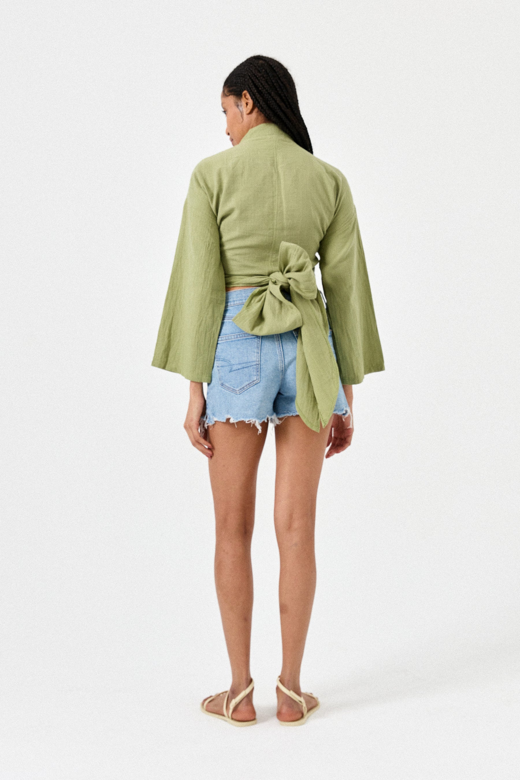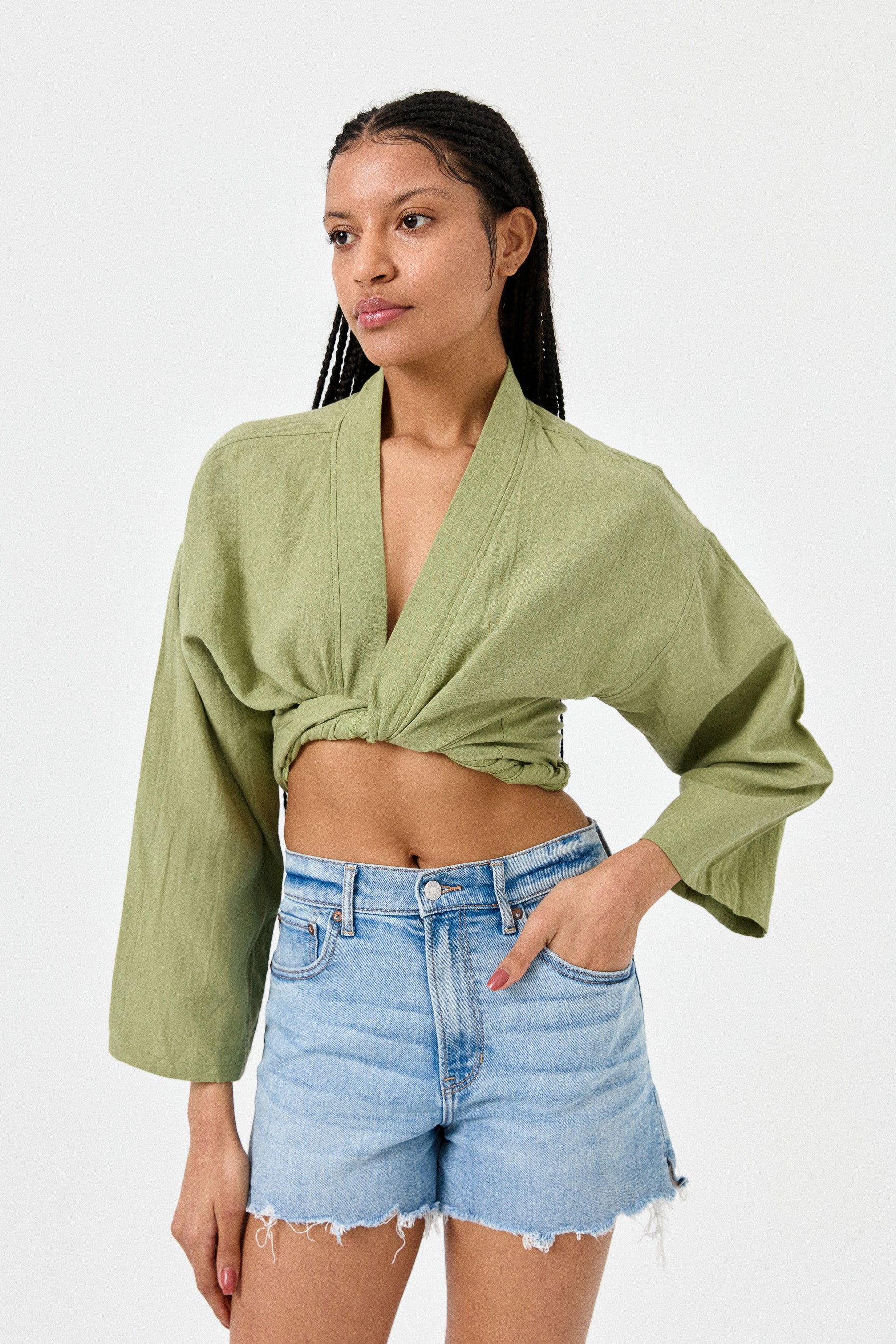 This 100% cotton wrap top is a great wardrobe staple with its versatile fit that can be dressed up or down. Wear it with jeans and sneakers for a casual day out or a skirt and sandals for a chic weekend look.