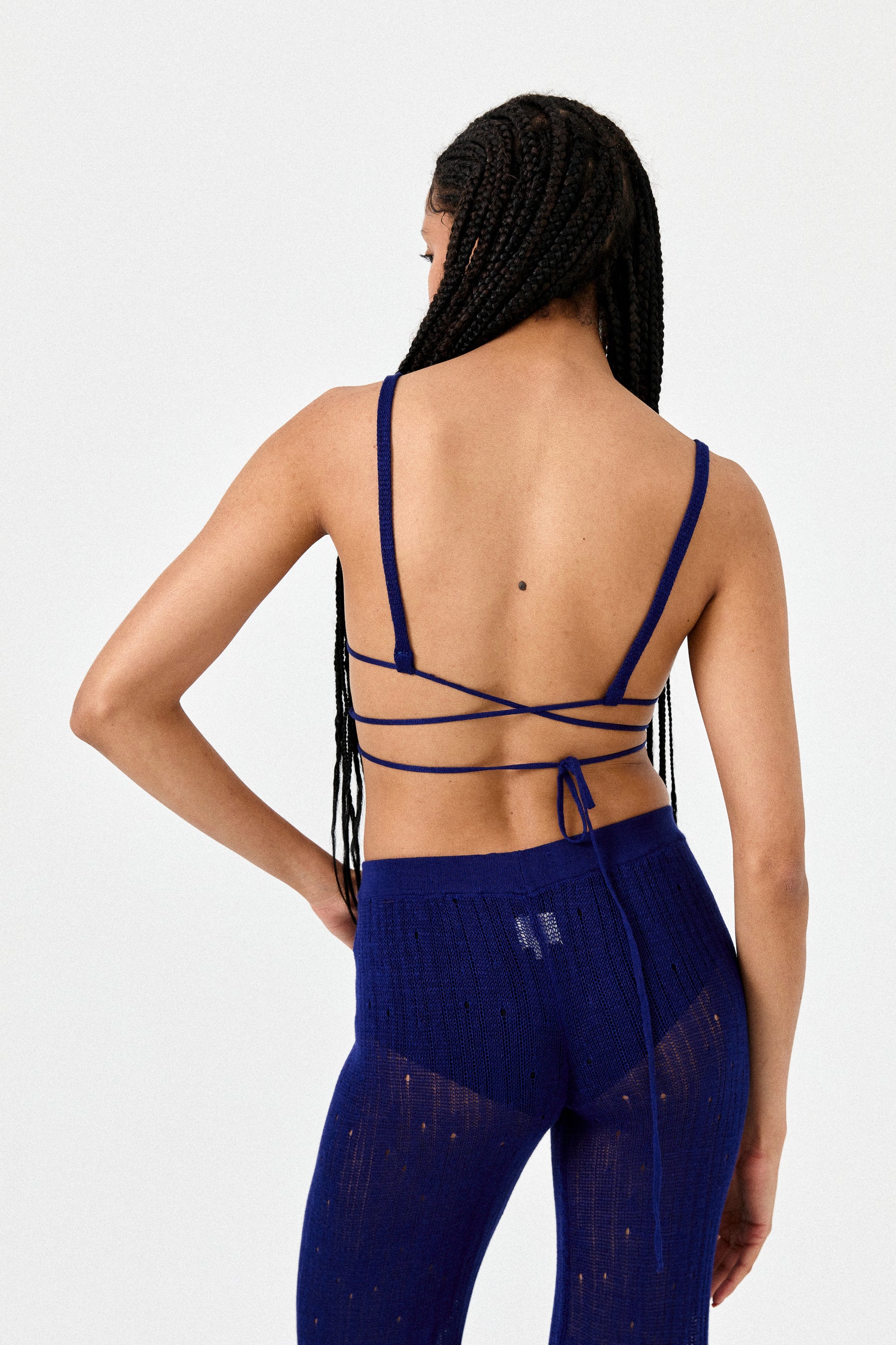 This knit viscose bikini top is the perfect piece for summer days. It can be worn alone with the matching pants or under a linen blazer with jeans for an effortless chic look.