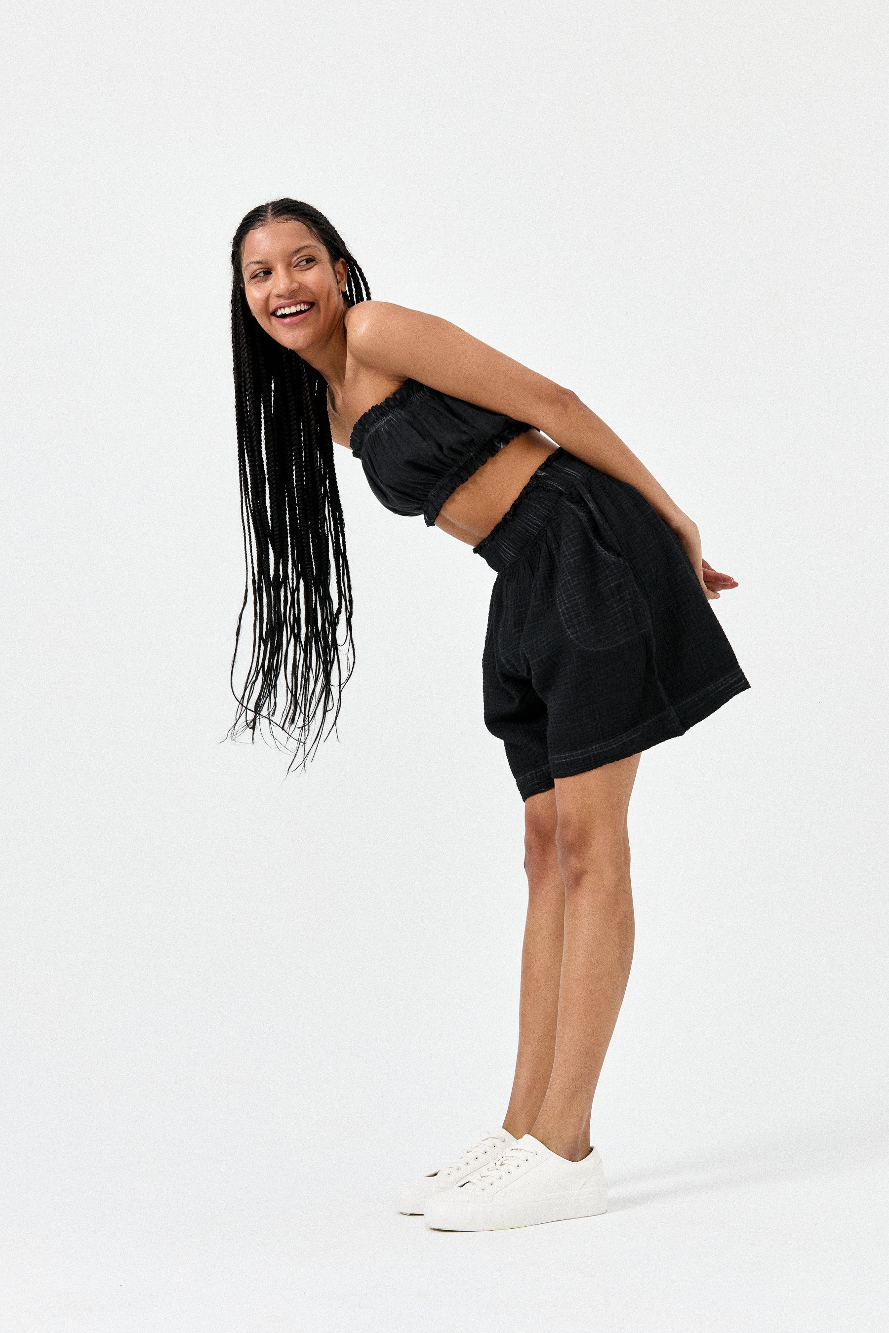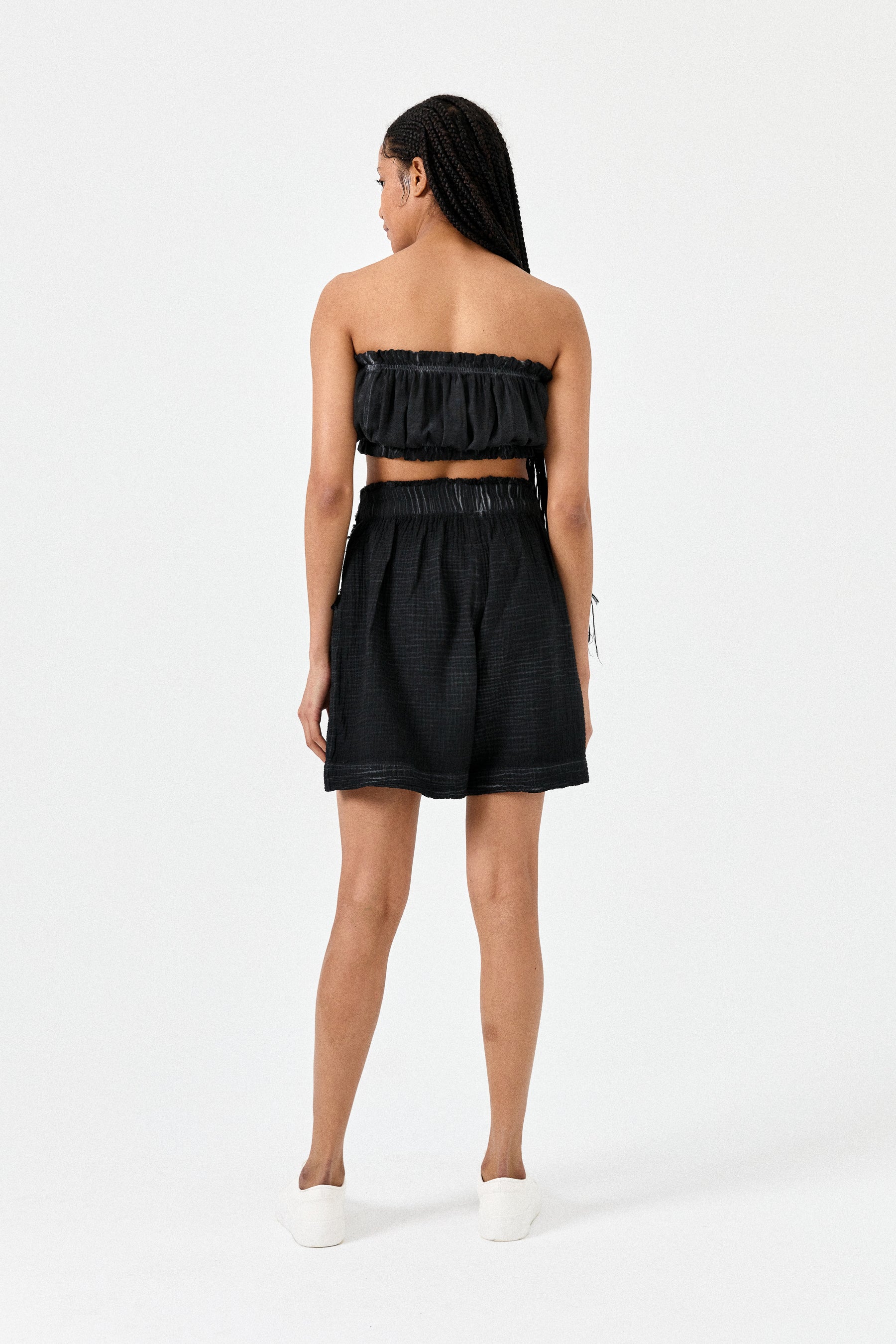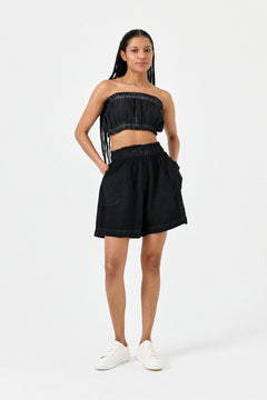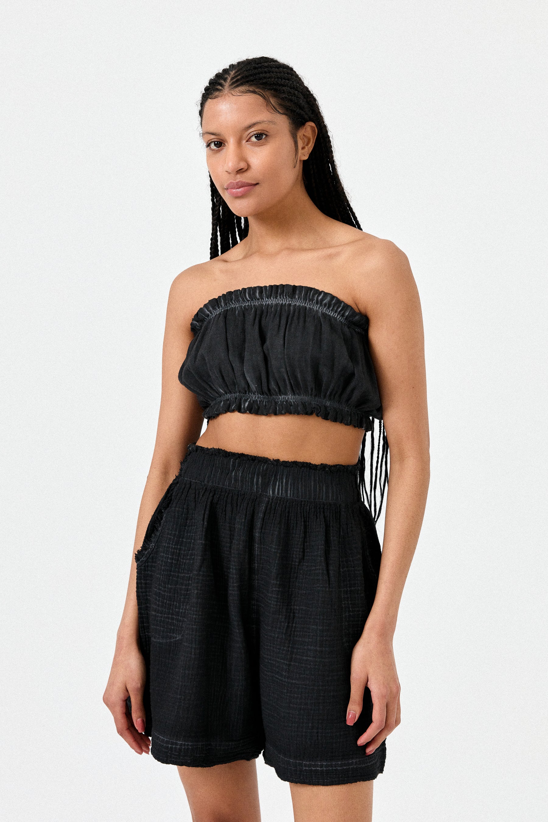 This bandeau top is a stylish essential for your summer wardrobe. Made from a mix of linen and cotton, it will keep you cool on a warm day. Wear it with the crinkle palazzo pants and sandals for an effortlessly chic look.