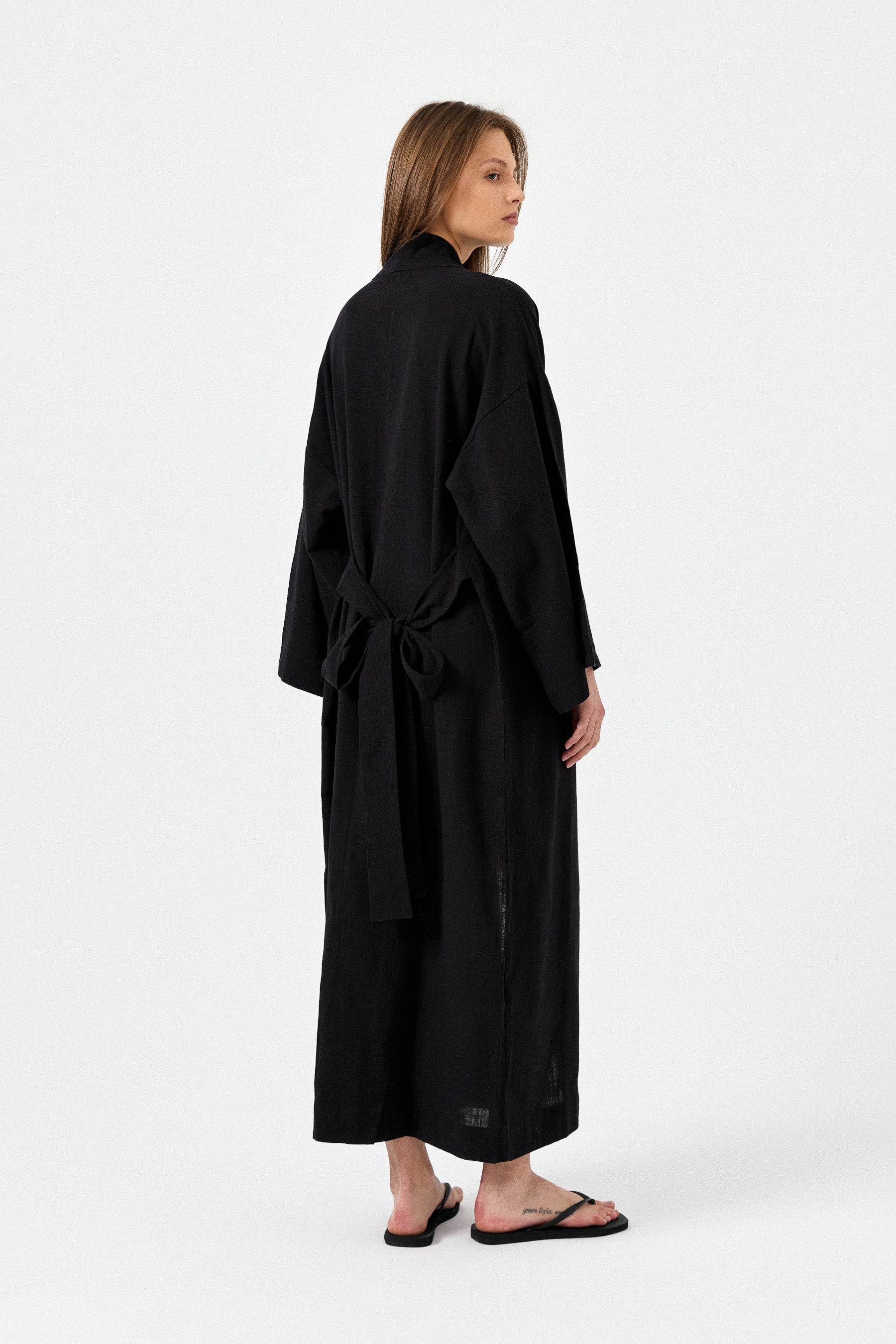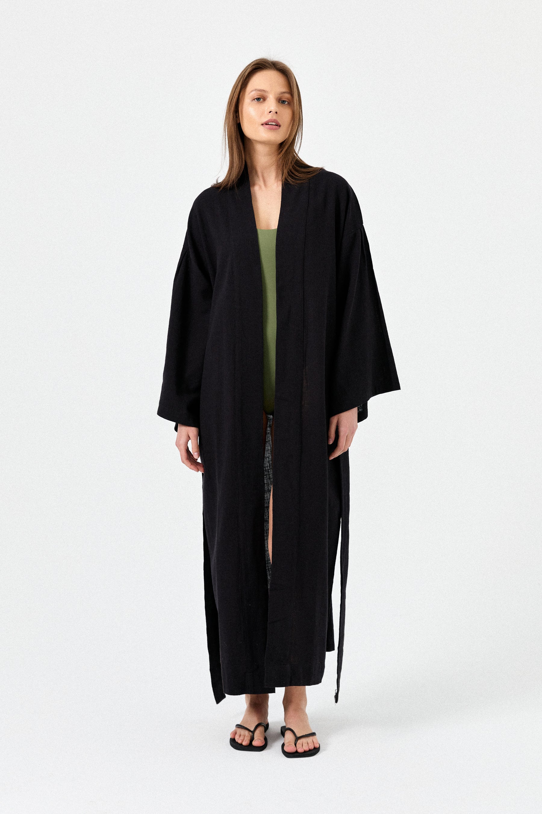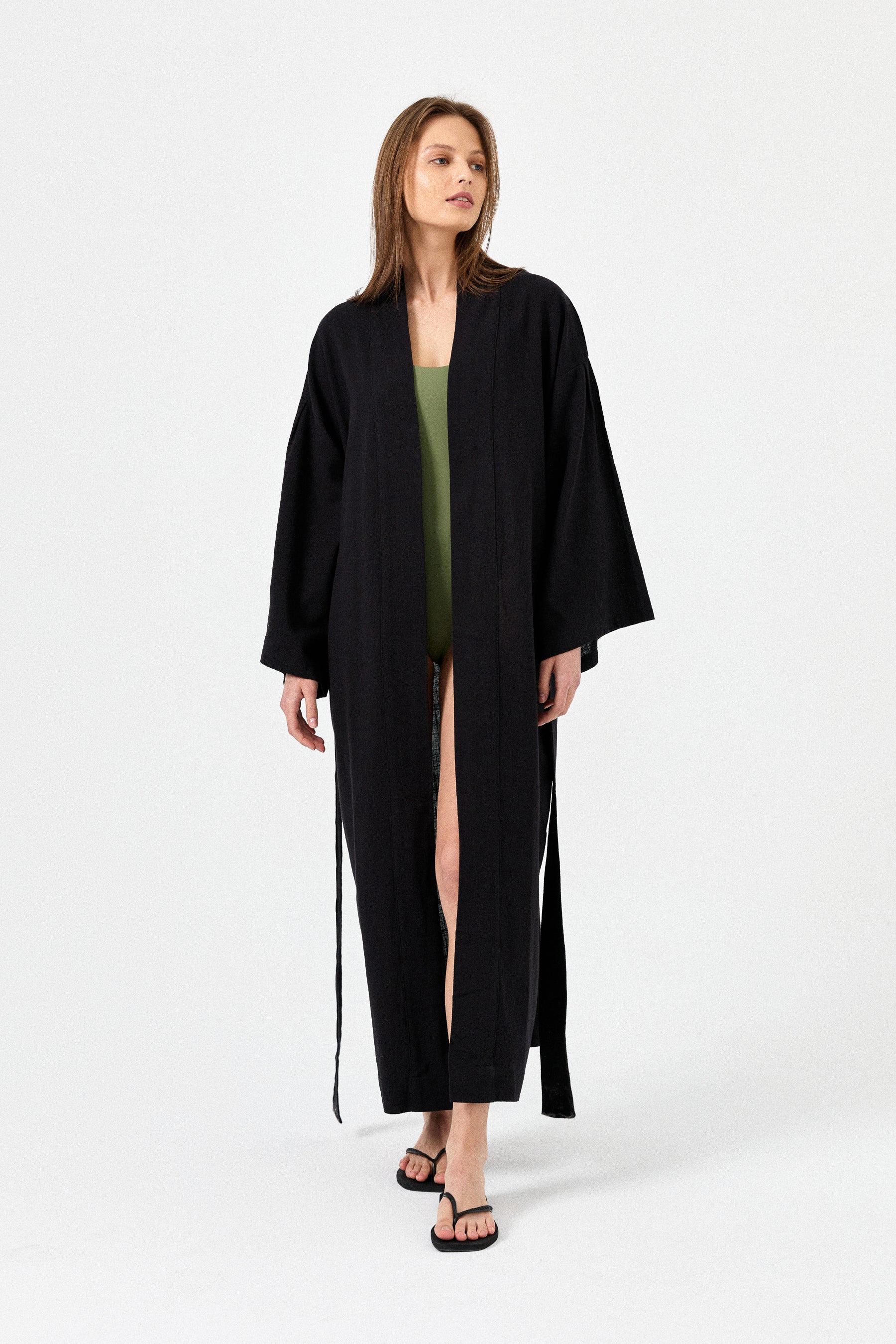 The long kimono is made soft cotton for a comfortable all-day wear. The oversized silhouette adds effortless style to any outfit, whether you're throwing it over a swimsuit, a dress or wearing it with jeans.
